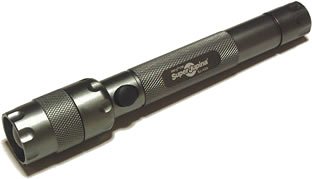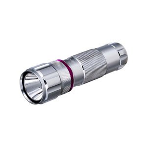 ●光学球面レンズ搭載●日亜製パワーLED白色1.5W球(5mm)●サイズ:径28×172mm、重量130g(電池含む)●主材料:アルミニウム●電源:単3×2本(付属)●連続点灯約3時間●ポーチ付